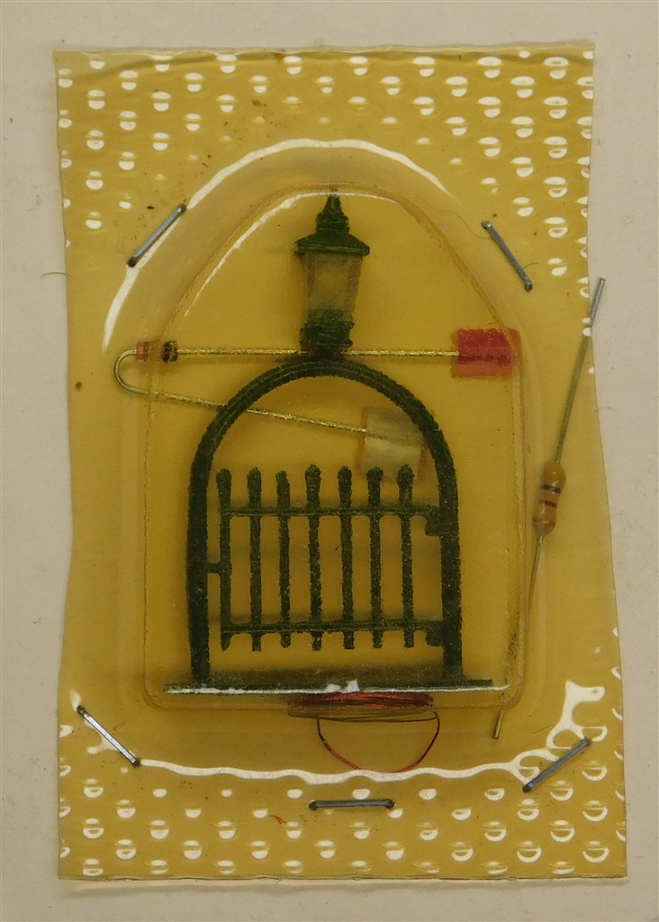 An unopened train-tronics Church Gate with LED lamp kit packet, with wiring instructions on the reverse of the packet