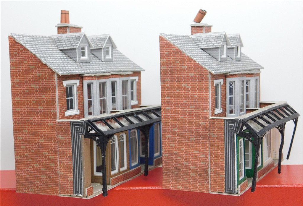 00 Accessories: 4 assembled Metcalfe low relief shops with arcade fronts