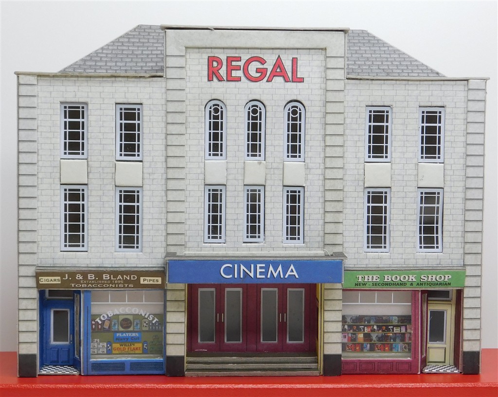 An assembled Metcalfe Regal Cinema with 2 shops low relief building, reasonably well assembled but sadly the edges haven been finished
