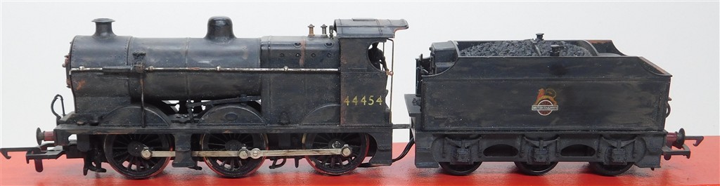 A weathered Airfix 4F 44454, runs but needs a thorough electrical clean and lubrication, especially the loco part as the wheels turn slowly, no original box, sold as a project
