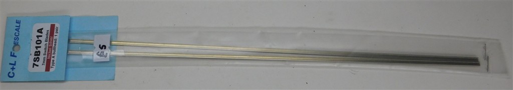 An unopened packet of C&L Finescale 7SB101A 7mm switch blades, type A, Bullhead rail, one pair