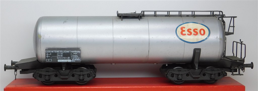A Rivarossi 0 gauge German DB Esso bogie tank wagon, 3 link couplings, missing under valves and pipework, loose footstep, in fair condition, no original box