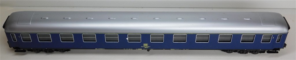 A Rivarossi 0 gauge 7781 German DB bogie 1st class coach, scale length, no interior fitted, in good condition, supplied in the original box. Note these will need to be sent ParcelForce rather than Royal Mail due to their length, 59cm long over buffers, box is 66cm long.