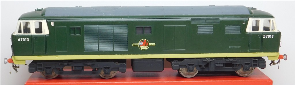 A nicely painted and detailed 0 gauge Tri-ang Big-Big Hymek with fine scale 2 rail two-axle drive chassis, good runner but needs the pickups to be kept clean, weight removed for safe transit, no original packaging