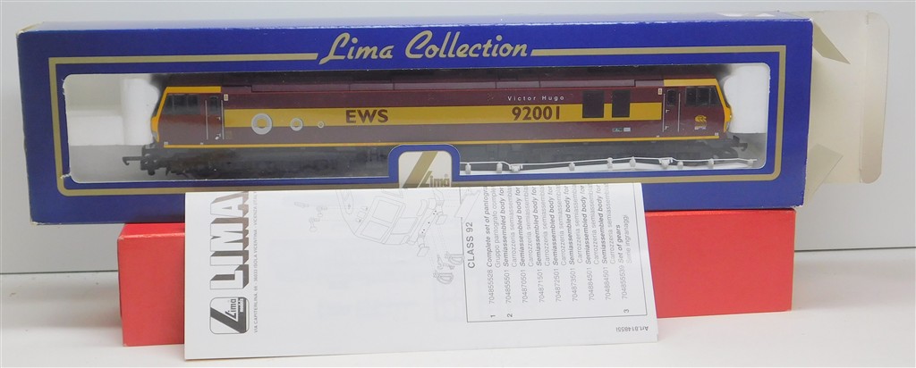 00 Diesels & Electrics: Lima L204870 EWS Class 92 Overhead Electric Locomotive - 92001 Victor Hugo, good runner