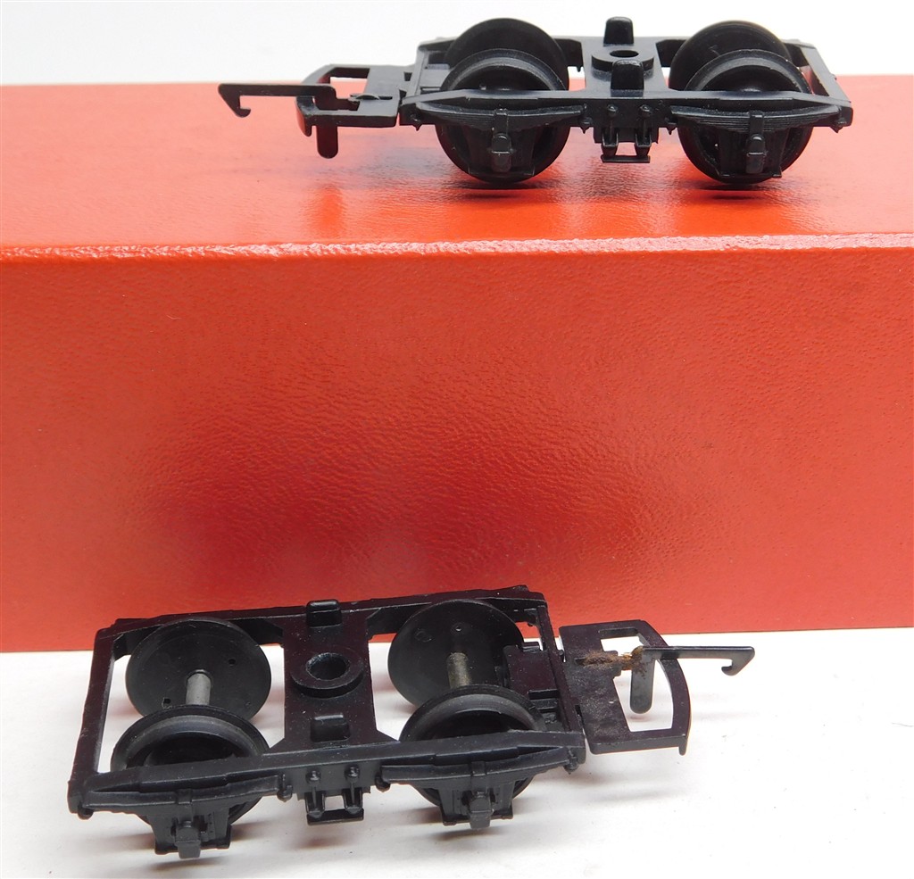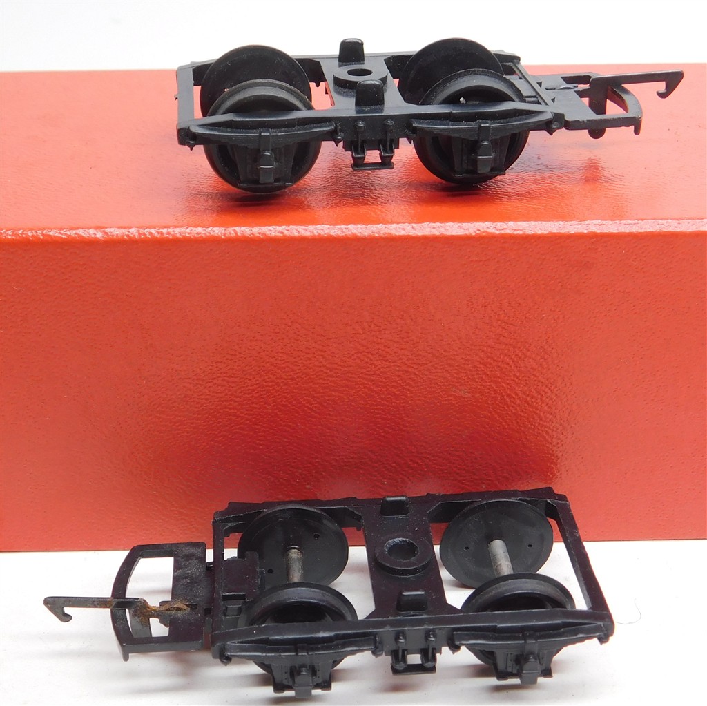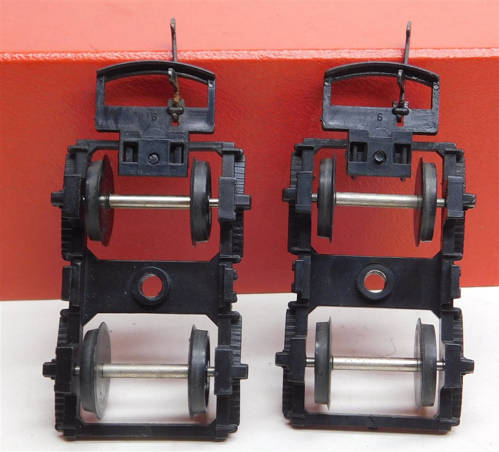 2 Airfix GWR B unit coach bogies with couplings, no retaining pins included, in good used condition