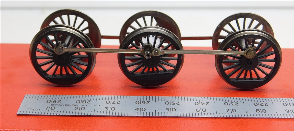 A set of Bachmann 21mm diameter driving wheels with con-rods, wheel spacing 36mm + 30mm