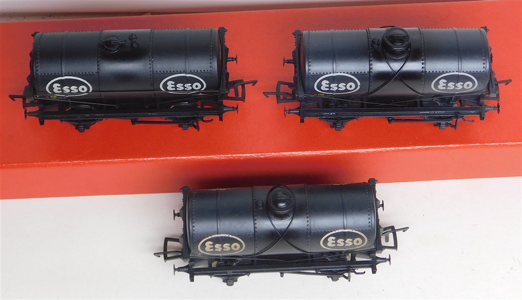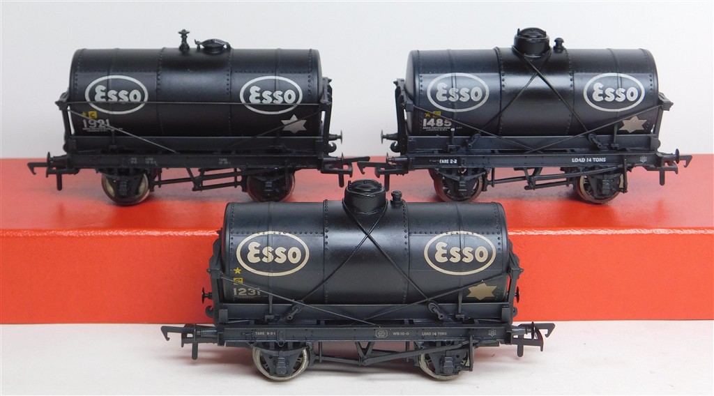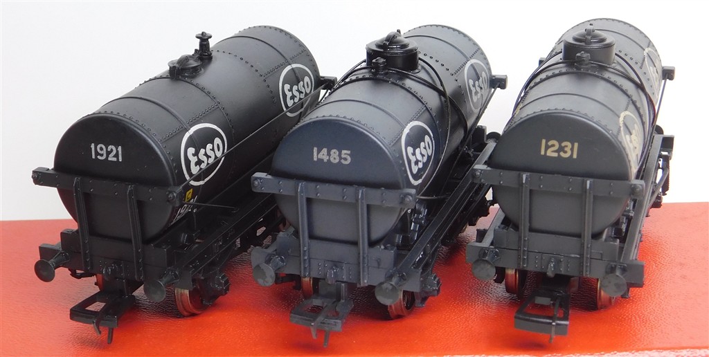 00 Wagons: 3 different Bachmann Esso black tank wagons number 1921, 1485 and 1231