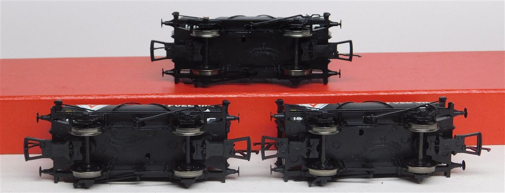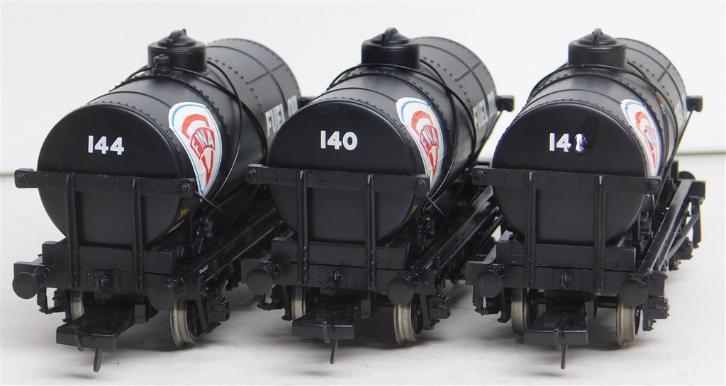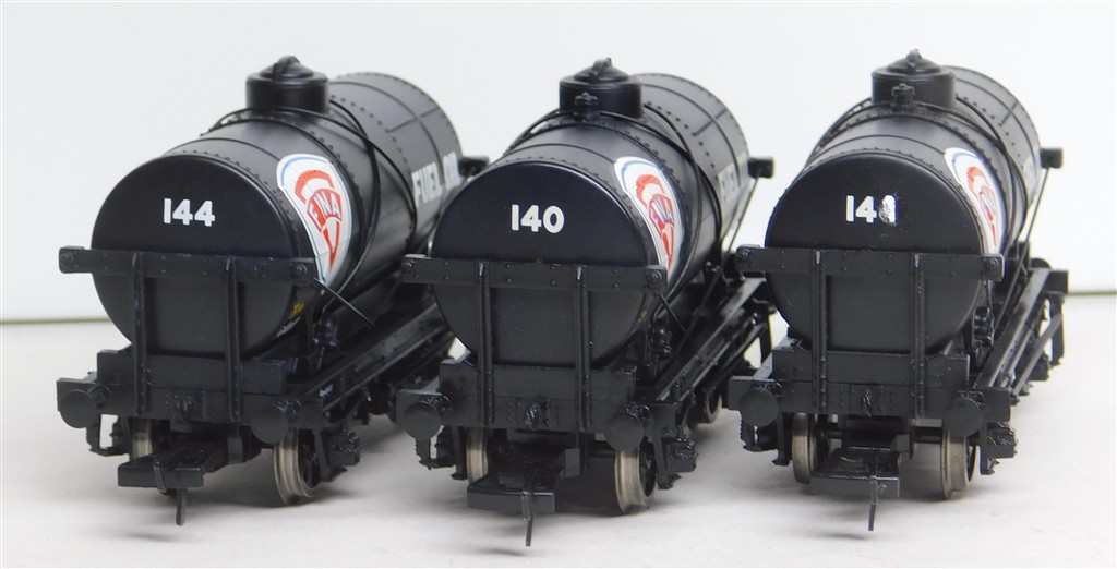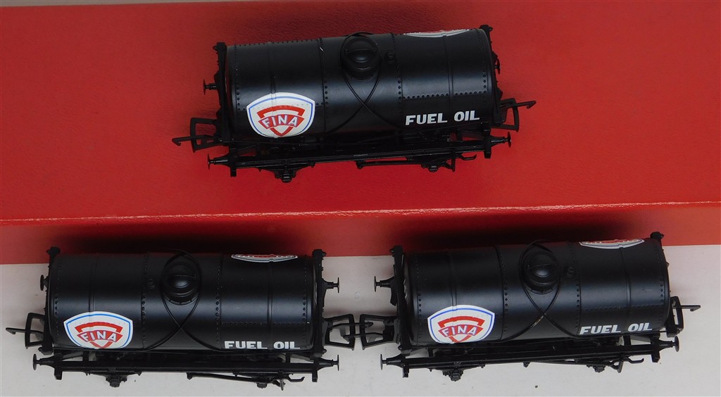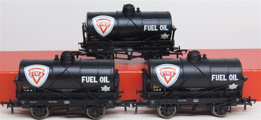00 Wagons: 3 Bachmann Fina silver tank wagons number 140, 141 (crudely renumbered) and 144