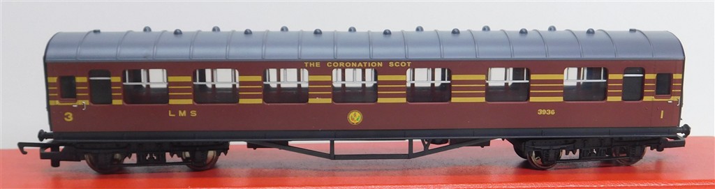 00 Coaches: Hornby LMS Coronation Scot red and gold composite coach number 3936