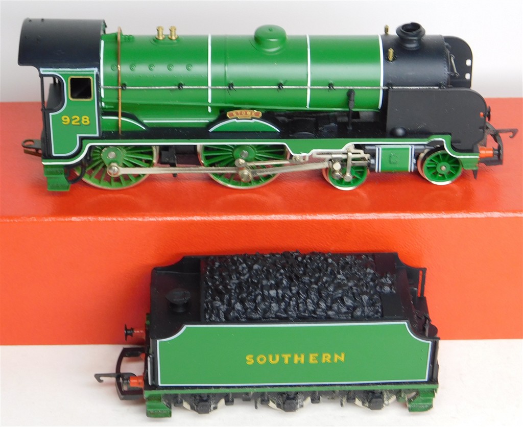 00 Steam Locos: Hornby R380 tender drive Southern malachite green Schools class steam loco number 928 Stowe