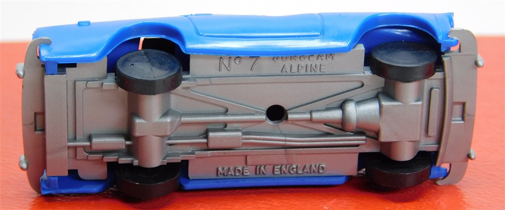 A Hornby Minix Sunbeam Alpine, blue, crack on front bonnet, needs dismantling and gluing