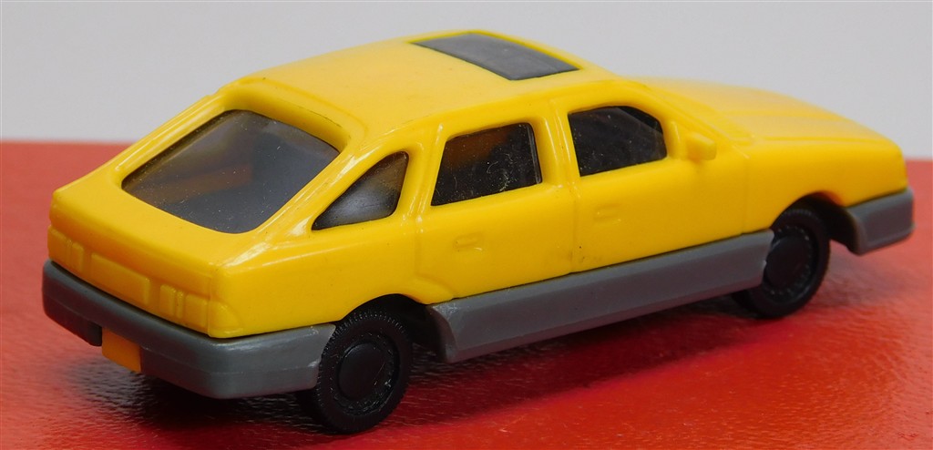 A Hornby plastic Triumph 2000 in yellow, in good condition, no original packet