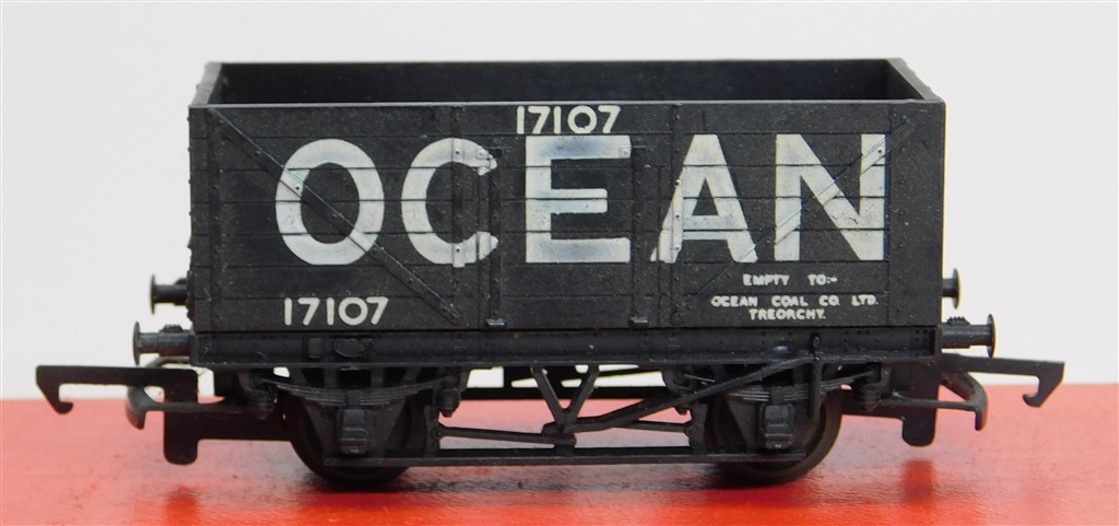 A Trix plastic bodied Ocean 7 plank wagon with Tri-ang couplings, in good condition, please note this are 3.8mm/ft scale not 4mm/ft scale, no original box.