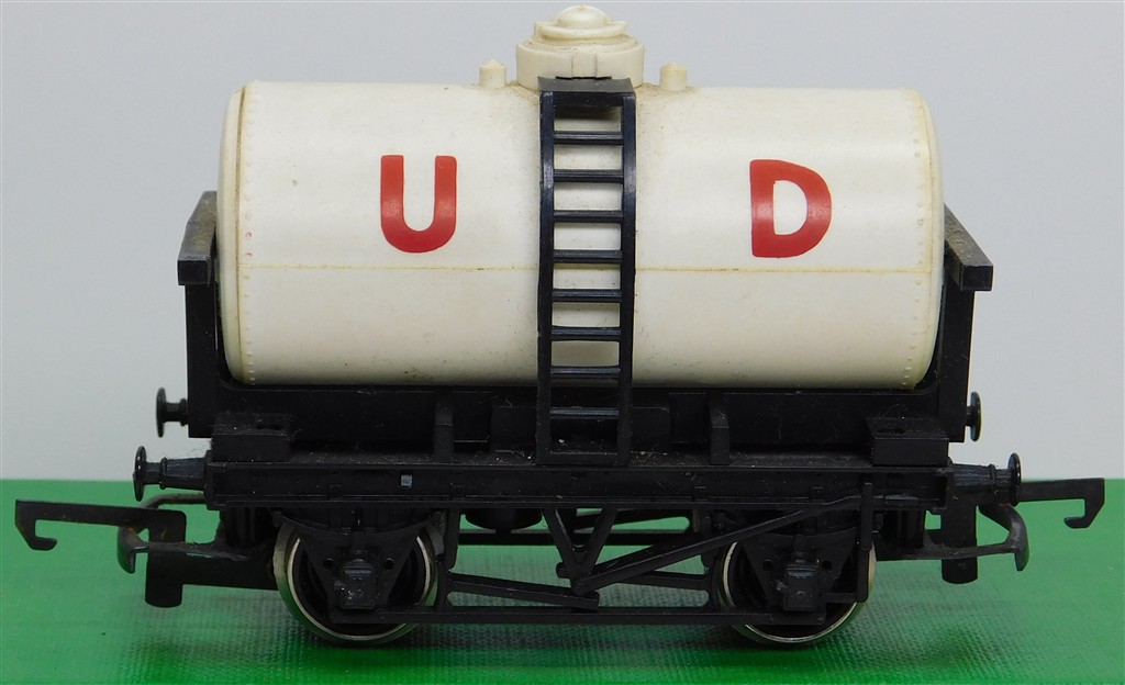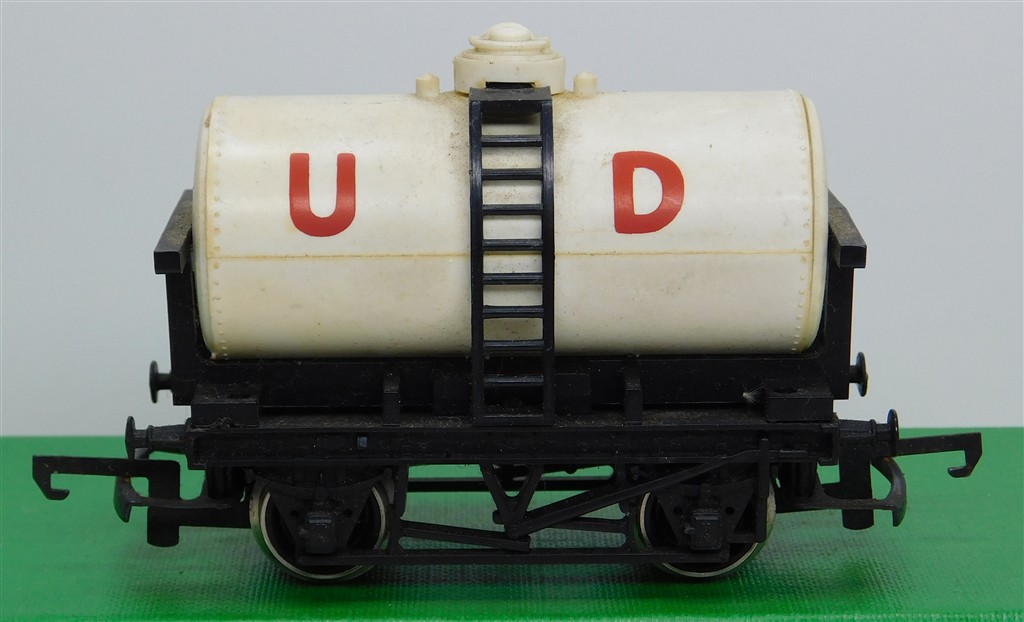A Hornby UD milk tank wagon, plastic chassis with pin-point axles, in good condition, no original box