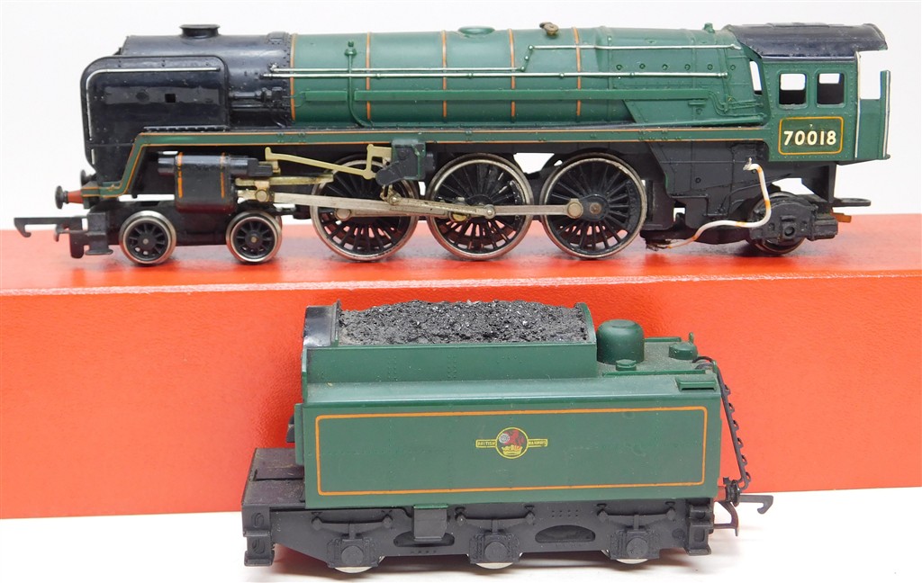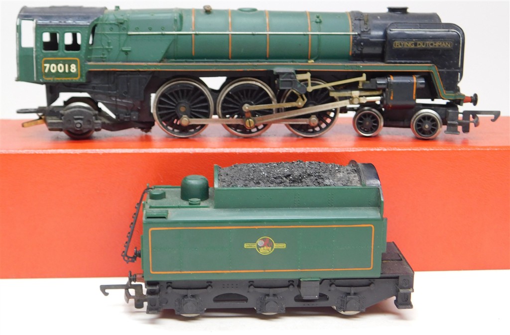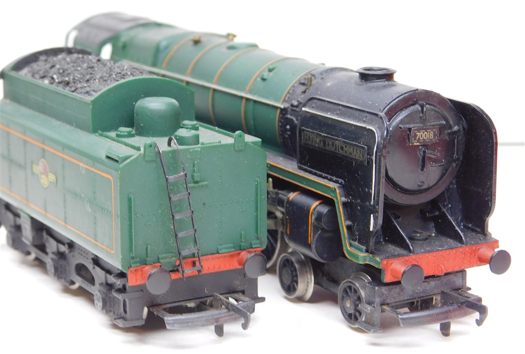 A Hornby tender drive badly renamed Britannia "Flying Dutchman", very reluctant runner: needs a thorough electrical clean and lubrication, missing nameplate one side, in poor condition, no original box, sold as a project or a source of parts