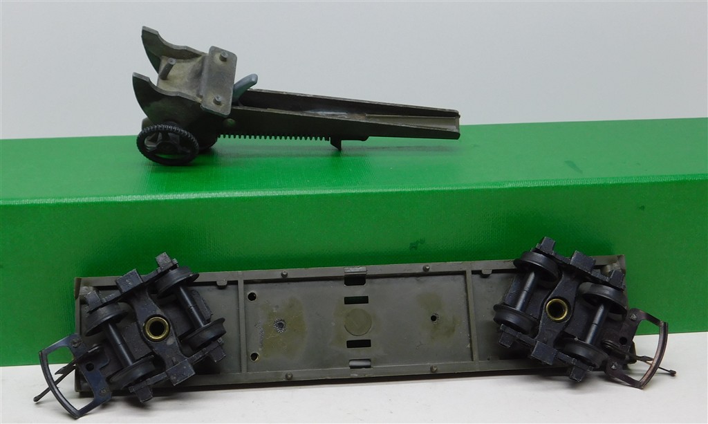 A Tri-ang Battlespace rocket launcher wagon, incomplete for spares/repair, in poor condition, khaki green, no original box, metal bogies with deep flanged wheels