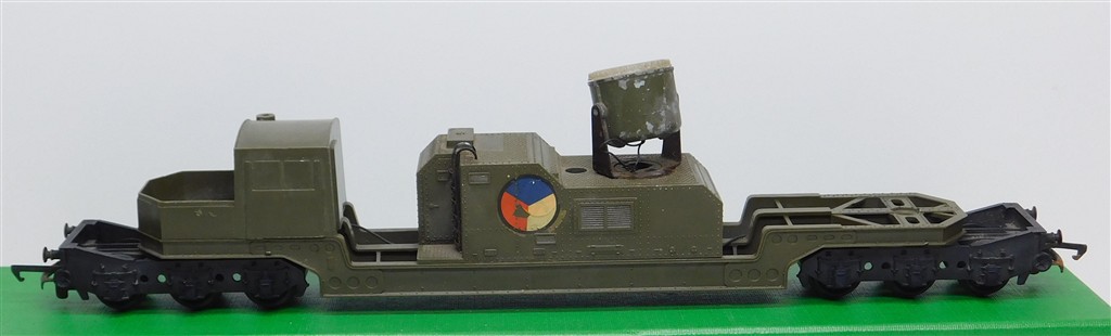 Tri-ang Transcontinental: Tri-ang Battlespace searchlight car, khaki, unnumbered