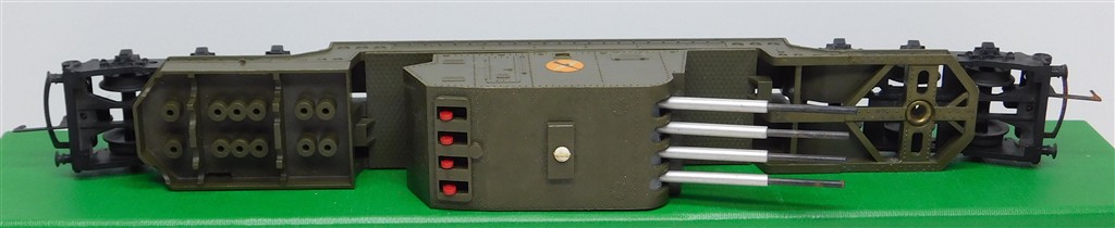 Tri-ang Transcontinental: Tri-ang Battlespace multiple rocket launching car, khaki, unnumbered, incomplete