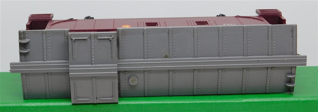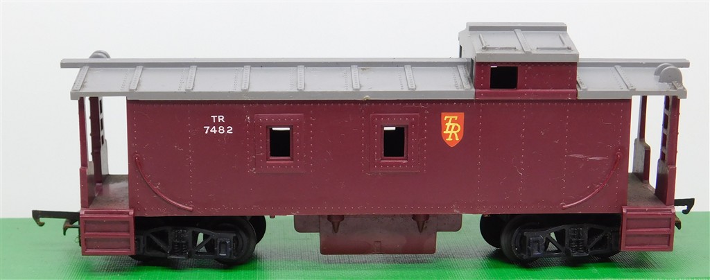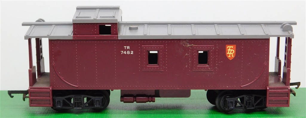 Tri-ang Transcontinental: Tri-ang TC TR shield caboose TR 7482, plastic bogies, missing chimney
