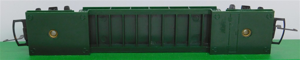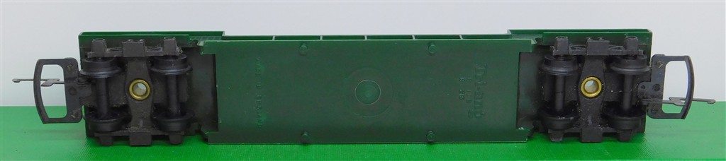 Tri-ang Transcontinental: Tri-ang TC TR green depressed center car TR1371, metal bogies