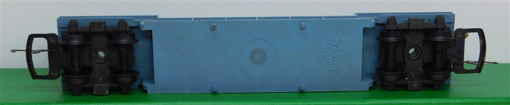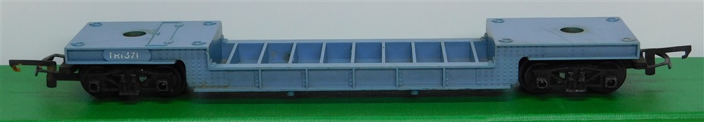 Tri-ang Transcontinental: Tri-ang TC TR pale blue depressed center car TR1371, metal bogies