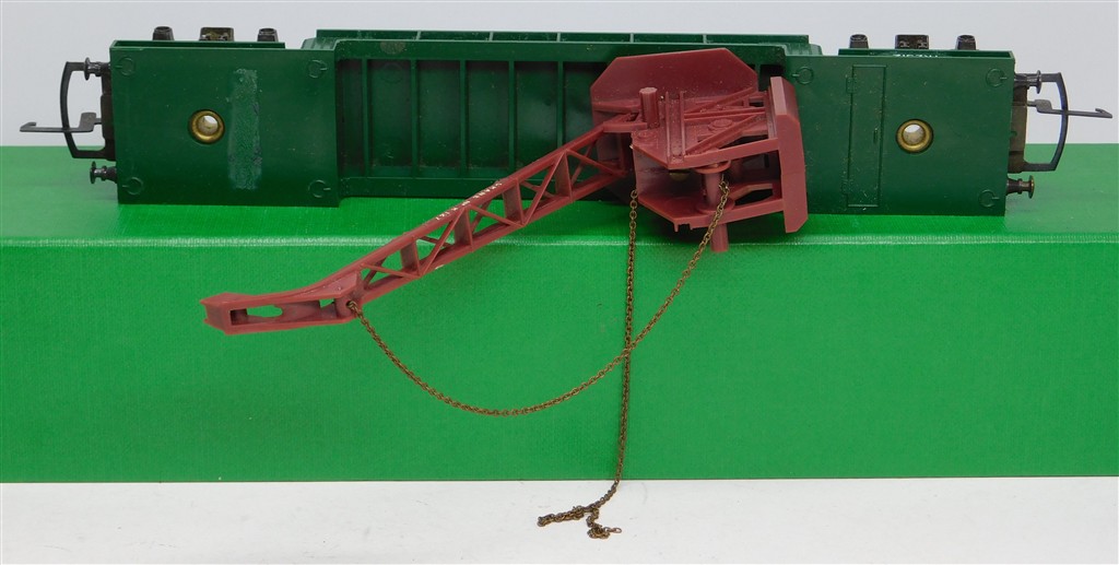 Tri-ang Transcontinental: Tri-ang TC TR green crane car TR2312, metal bogies