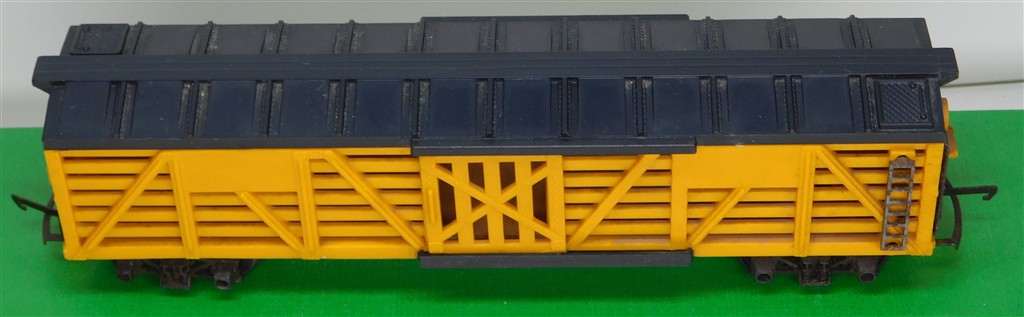Tri-ang Transcontinental: Tri-ang TC unlettered yellow stock car, metal bogies