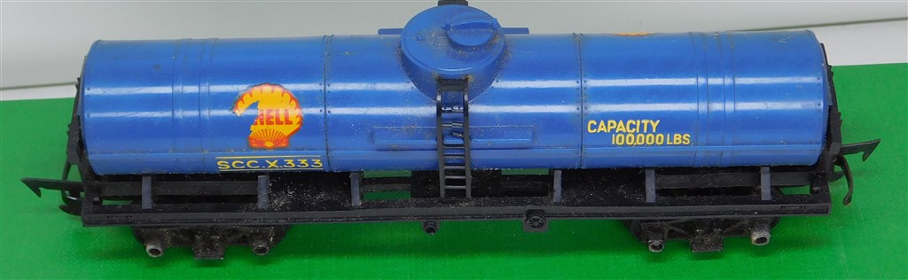Tri-ang Transcontinental: Tri-ang R117 TC bogie tank car, blue, metal bogies with MkII couplings