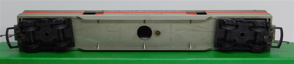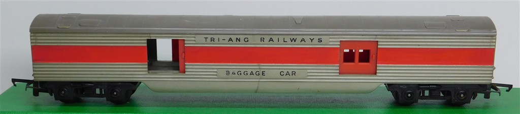 Tri-ang Transcontinental: Tri-ang TC TR 1st series silver and red baggage car 10724 with plastic bogies