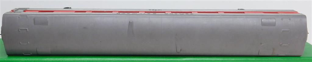 Tri-ang Transcontinental: Tri-ang TC TR 1st series silver and red passenger car 10724 with metal bogies with MkII couplings (A)