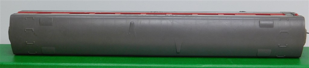 Tri-ang Transcontinental: Tri-ang TC TR 1st series silver and red passenger car 10724 with metal bogies with MkII couplings (B)