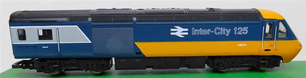 A Hornby 1980s production BR blue class 43 HST power car number 43010, good runner, new traction tyres fitted, working directional headlight, in good condition, supplied in an incorrect original box