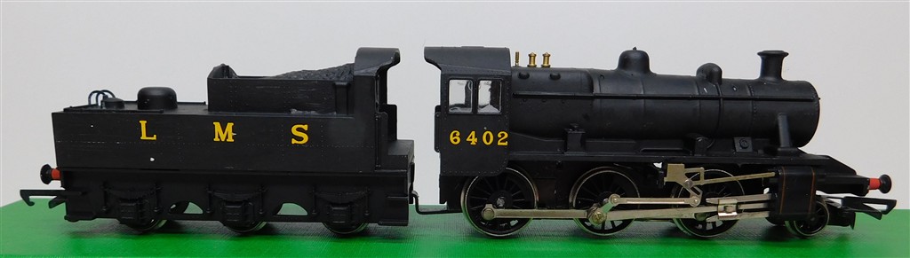 A mid 1970s production Hornby repainted LMS Ivatt 2MT 2-6-0 steam loco 6402, good runner, supplied in the tatty original box. Please note this loco needs a controller capable of delivering at least 600mA to run well.