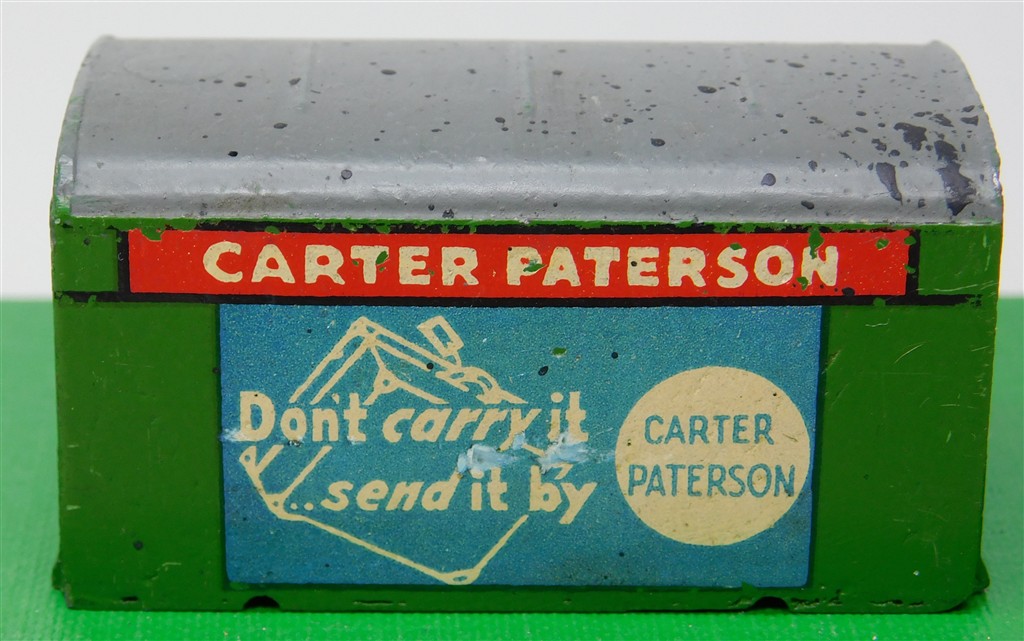 A Master Models metal Carter Paterson container with paper labels, 1950s production so may contain lead in the paint or metal casting, in fair condition, no original box