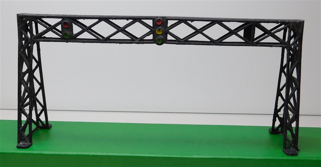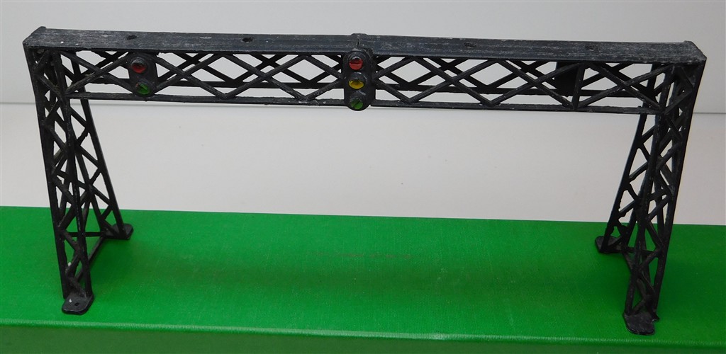 A Master Models colour light signal gantry, non-operating, 1950s production so may contain lead in the paint or metal casting, in good condition, no original box