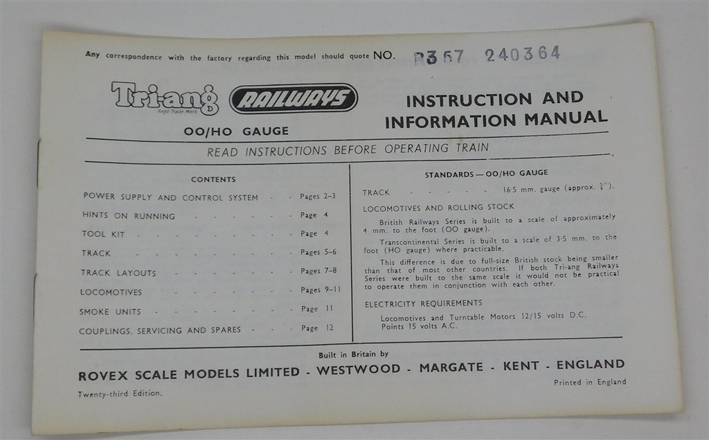 Books and DVDs: Tri-ang R357 Instruction and Information Manual