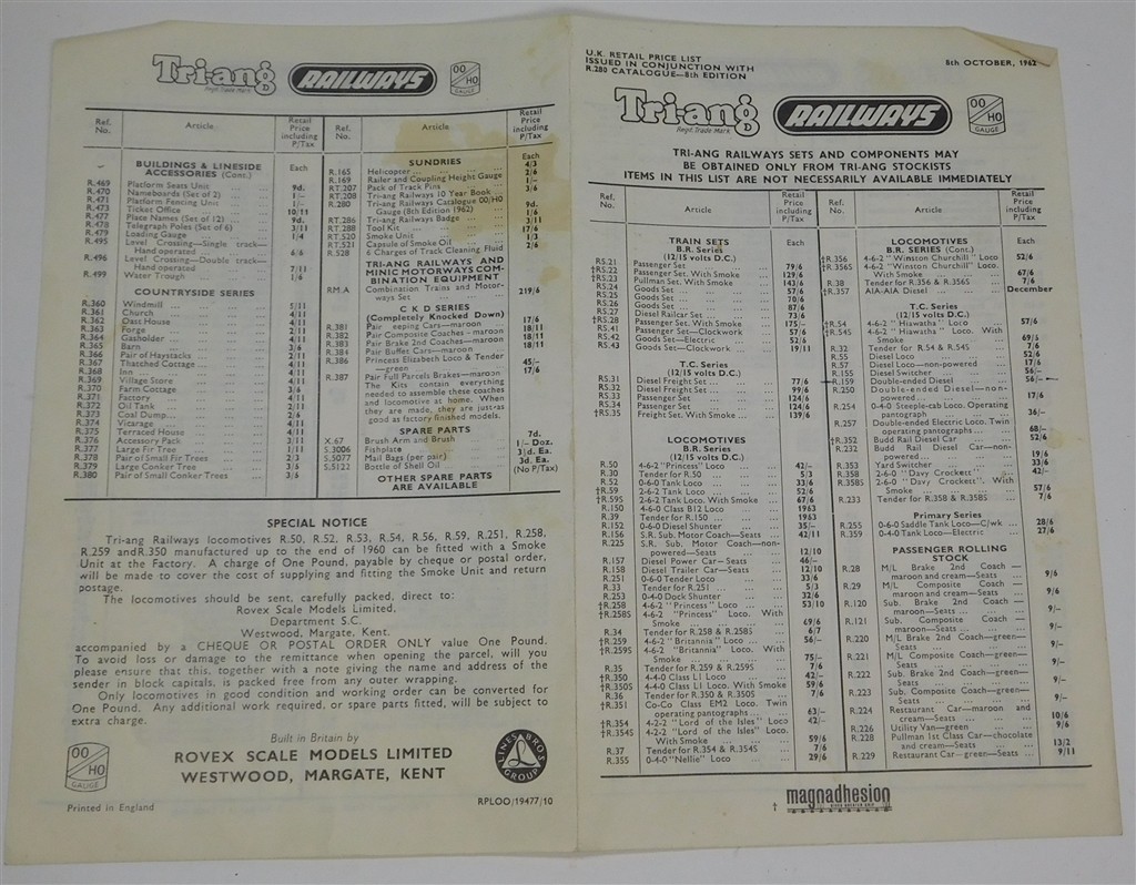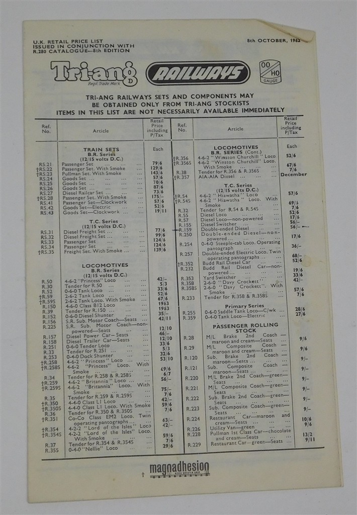 Books and DVDs: Tri-ang October 1962 price list