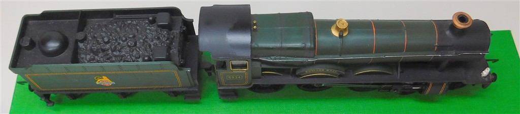A mid 1970s production Hornby repainted and lightly detailed BR green livery 4-6-0 steam loco Kneller Hall, good runner, in good condition, supplied in the tatty original box. Please note this loco needs a controller capable of delivering at least 600mA to run well, and doesn't like new Hornby or Peco points due to the deep flanged wheels