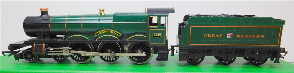 A mid 1970s production Hornby GWR green livery Hall class 4-6-0 steam loco 4983 Albert Hall, good runner, in good condition, no original box. Please note this loco needs a controller capable of delivering at least 600mA to run well, and doesn't like new Hornby or Peco points due to the deep flanged wheels