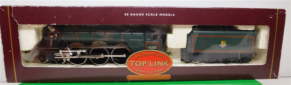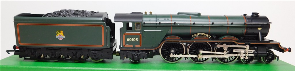 A Hornby renamed tender drive A3 steam loco number "Dick Turpin", incorrect 60103 number, BR green livery, good runner, in good condition, supplied in the tatty original box, needs either renaming or renumbering correctly.