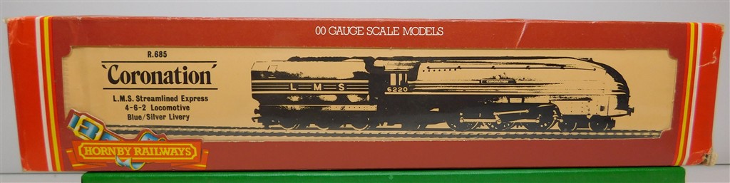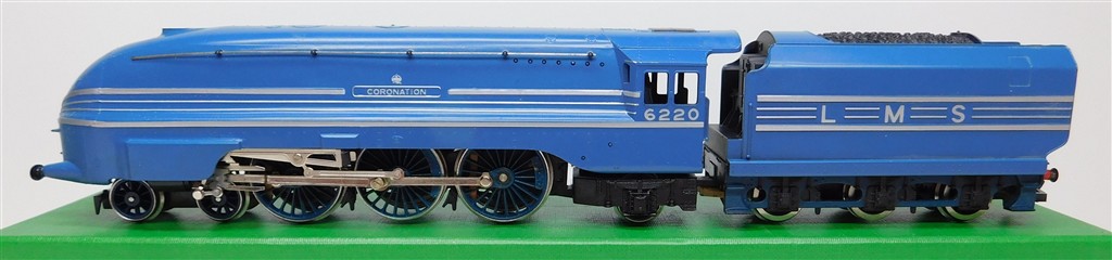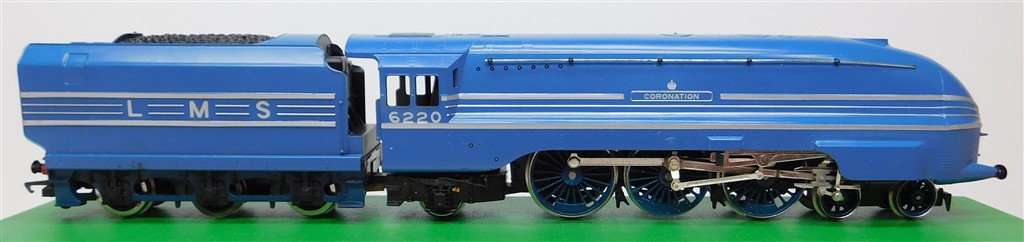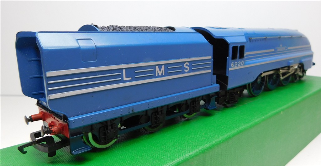 A Hornby R685 tender drive LMS Coronation steam loco number 6220, blue livery, good runner, in good clean condition, supplied in the tatty original box.