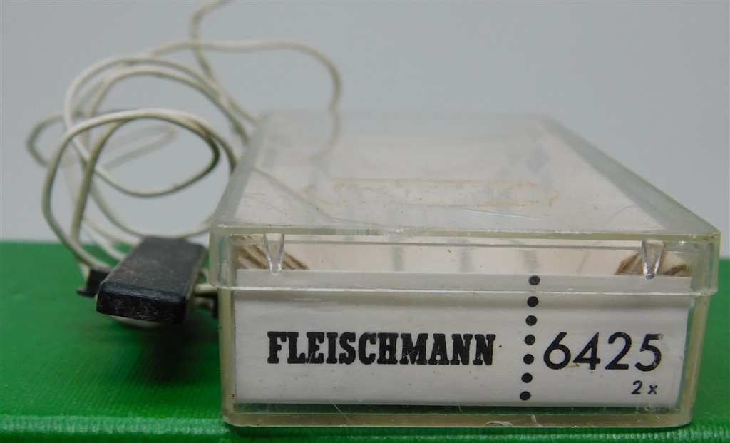 A Fleischmann 6425 magnet operated track mounted reed switch, needs a small magnet on the underside of passing trains to operate, in good condition, supplied in the original box