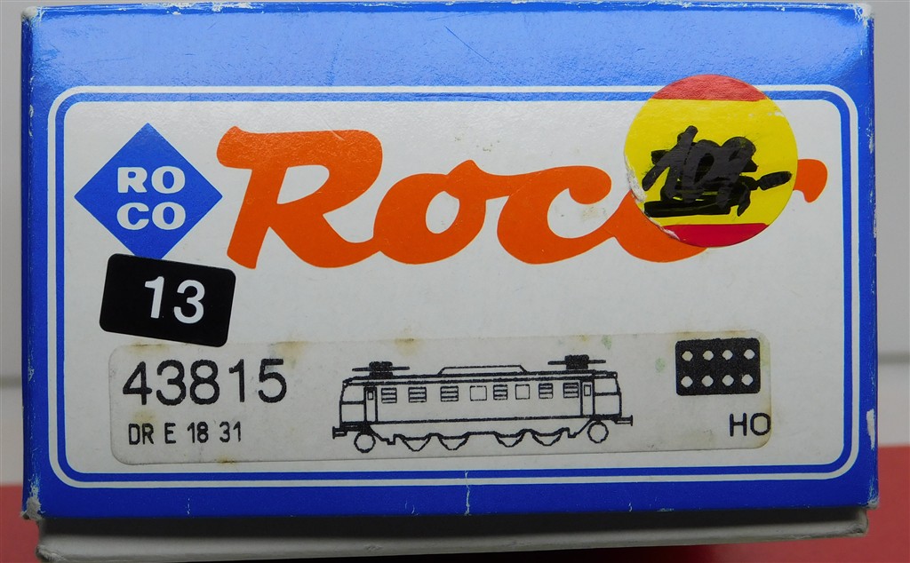 A Roco 43815 East German DR 218 019-8 electric loco, slow noisy runner, needs a thorough electrical clean and lubrication, may need new traction tyres, missing one buffer, with an assortment of detail parts, supplied in the original box