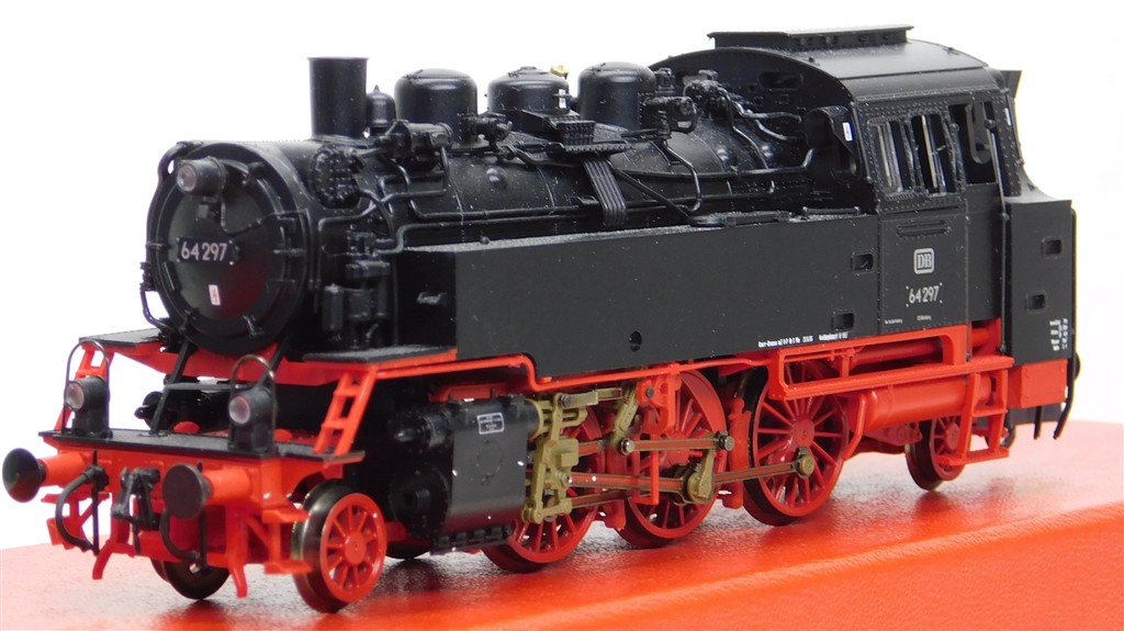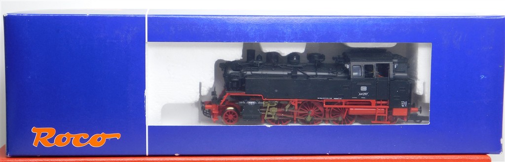 A Roco 62200 German DB class 64 2-6-2T steam loco number 64 297, DCC fitted (manufacturer code 169, loco code 3), good runner on both DC and DCC with directional head lights, in very good condition, supplied in the original box, if you are running on DC only and wish us to remove the chip before posting please ask.