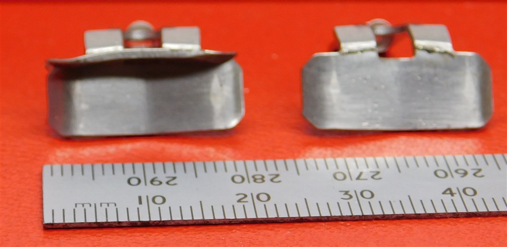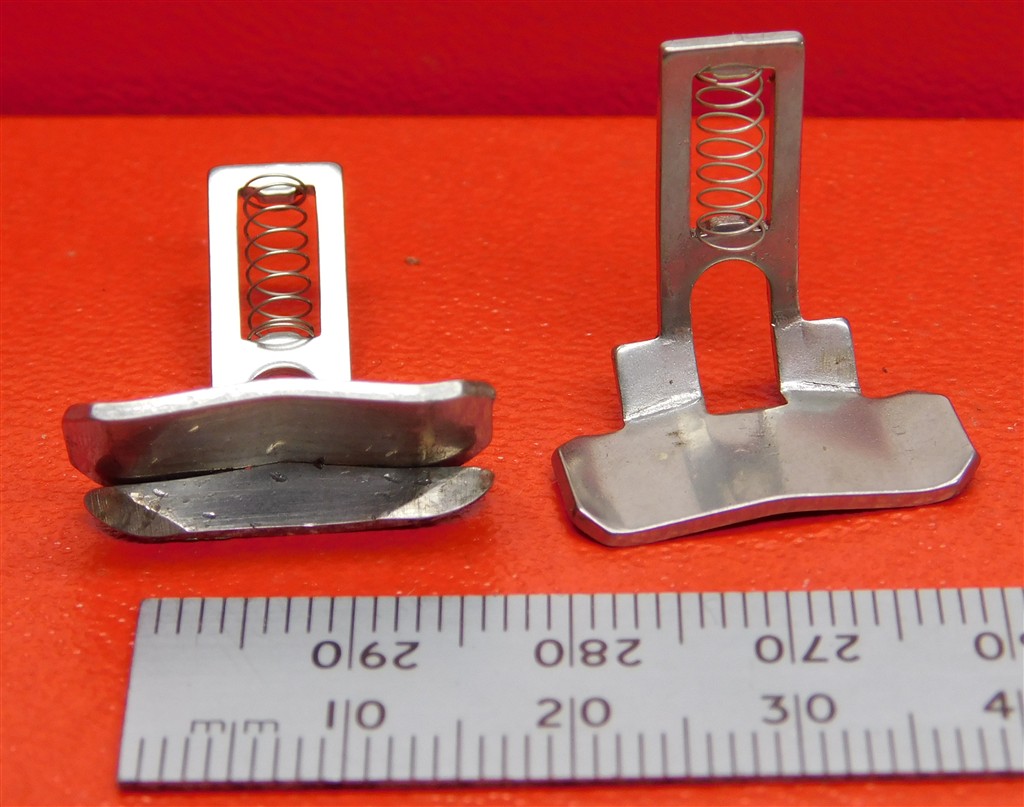 A pair of lightly used LGB pickups with springs, in fair condition, one with a flange, ruler not included