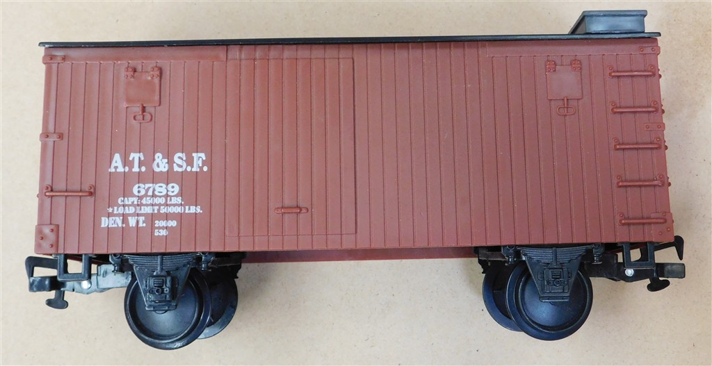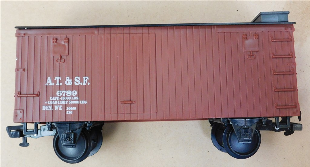 A G scale 4 wheel Santa Fe box car, in good condition, make unknown