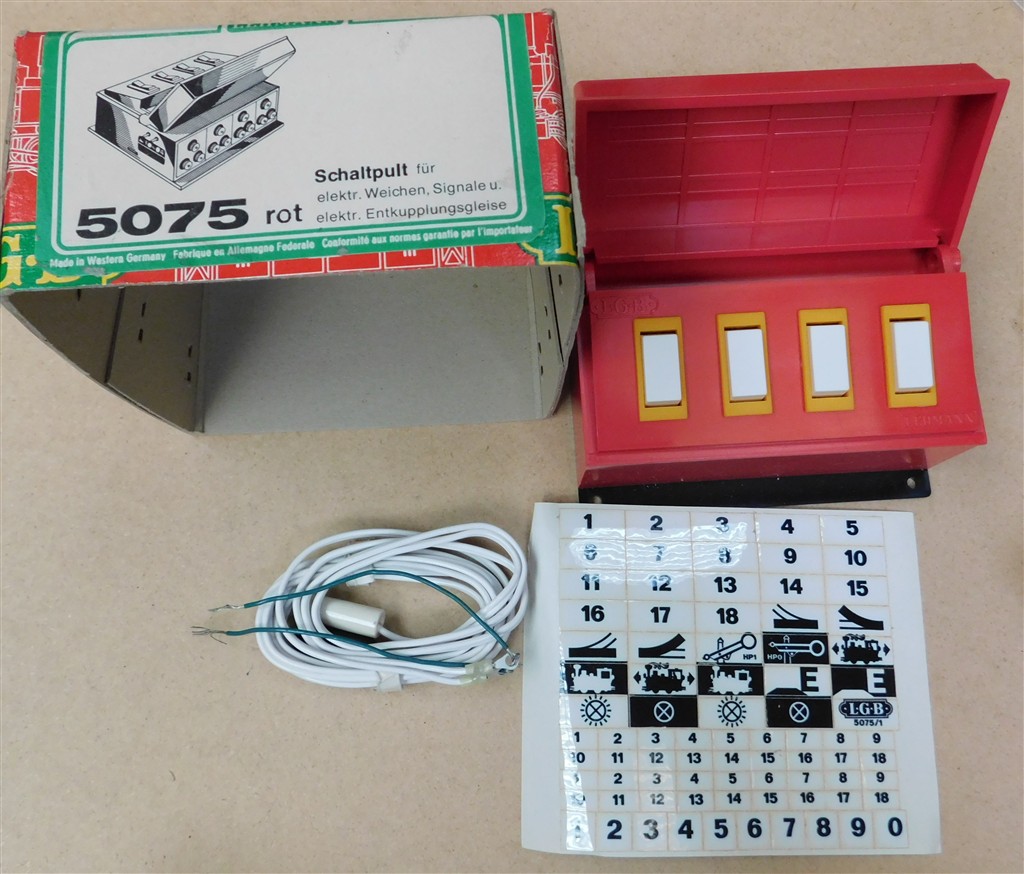 An LGB 5075 red G scale point motor switch unit, in good condition, supplied in the original box
