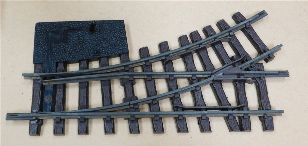 G scale: LGB G scale 1st radius left hand point, jammed mechanism, as removed from a garden layout