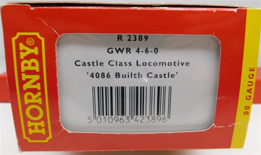 A Hornby R2389 GWR Builth Castle, motor runs, no drive, cause needs investigating and fixing, loose bodyshell as the rear nut housing is broken and needs repair, body in good condition, supplied in the original box, sold as a project needing work!